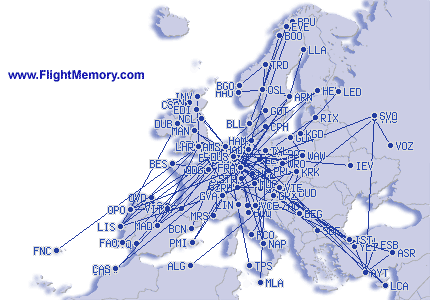 Europaflyvninger![]() Klik på kortet for at forstørre |