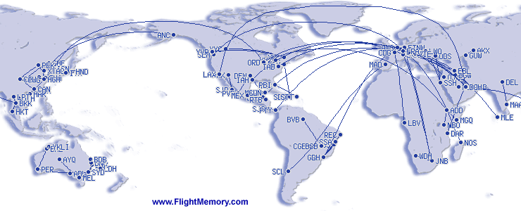 | Pisin lento (kesto): | 17:40 h, 12,194 km, Addis Abeba (Bole International) - Chicago (O'Hare), 02.03.2021 |
