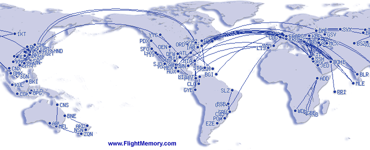 | Vol le plus long (en distance): | 11,014 km, 13:05 h, Dubai (International) - New York (John F. Kennedy), 24.04.2021 |