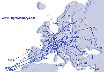 Europaflyvninger![]() Klik på kortet for at forstørre |