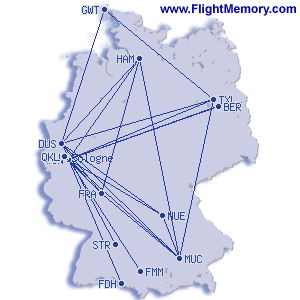 | kürzester Flug: | 138 km, 0:35 h, Frankfurt (Rhein-Main) - Cologne/Bonn (Konrad Adenauer/Wahn), 10.09.1999 |