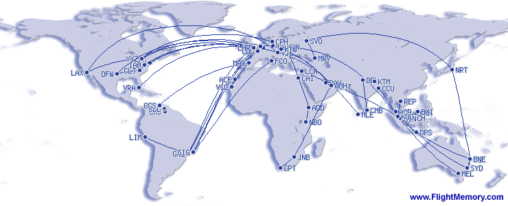 | Volo più lungo (distanza): | 10,560 km, 13:10 h, London (Stansted) - Kuala Lumpur (Sepang International), 29.11.2009 |