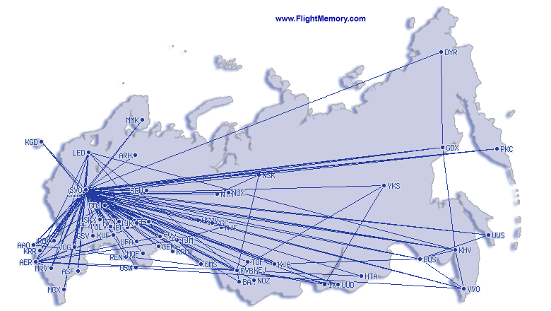 | kürzester Flug: | 192 km, 0:50 h, Novosibirsk (Tolmachevo) - Barnaul (German Stepanovich Titov), 04.07.2012 |
