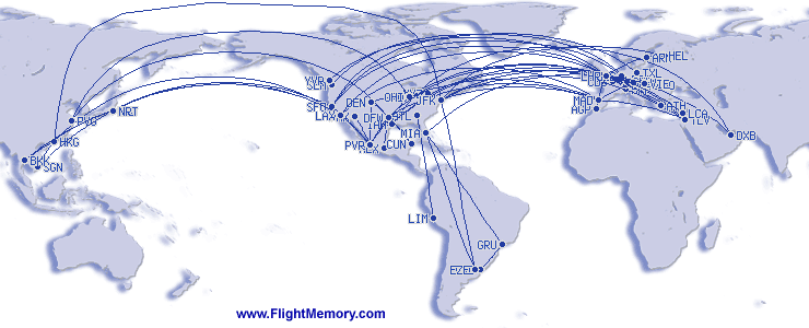 | Längsta flygsträcka: | 8,165 mi, 15:06 h, Dubai (International) - Houston (George Bush Intercontinental), 2018 |
