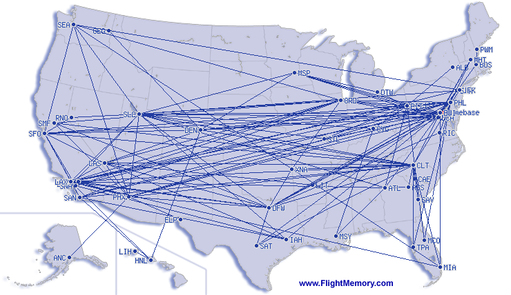 | kürzester Flug: | 75 mi, 0:38 h, Pittsburgh (International) - Johnstown (Cambria County) |