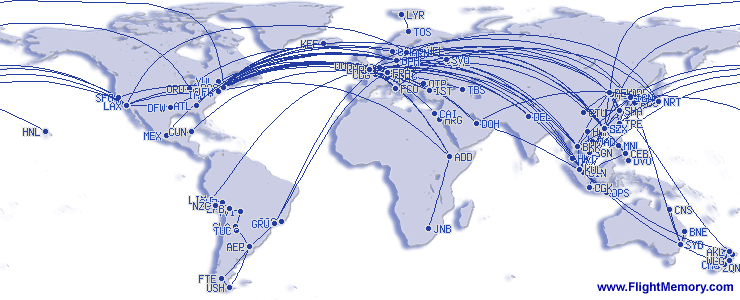 | (הטיסה הכי ארוכה (מרחק: | 14,117 km, 16:30 h, Singapore (Changi) - Los Angeles (International), 29.07.2013 |