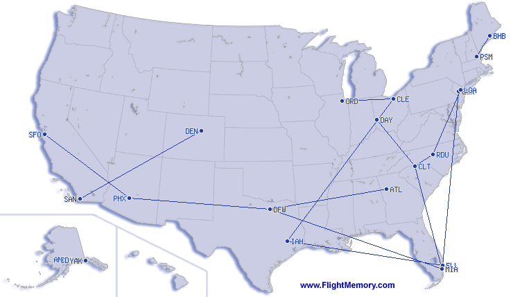 | 所搭乘过最短距离及时间的航线: | 101 km, 0:37 h, Chicago (O'Hare) - Kankakee (Greater Kankakee), 14.12.2025 |