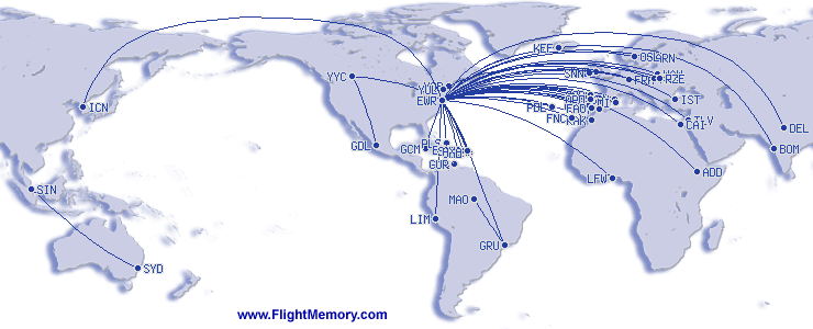| 平均航线距离及时间: | 4,635 km, 5:52 h |