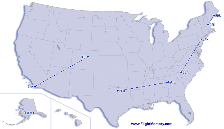 | Vuelo más corto: | 249 km, 0:47 h, Bar Harbor (Hancock County Airport) - Portsmouth (Pease AFB), 08.03.2026 |