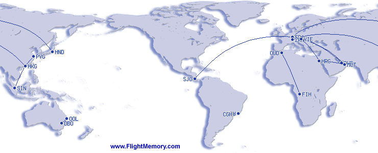 | Vuelo más largo (Duración): | 12:00 h, 9,290 km, Zürich (Kloten) - Hongkong (International), 07.03.2026 |