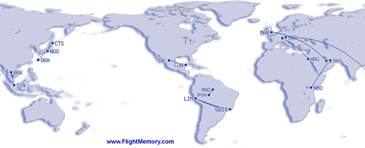 | (הטיסה הכי ארוכה (מרחק: | 10,069 km, 13:15 h, Singapore (Changi) - Munich (Franz Josef Strauss), 29.11.2025 |