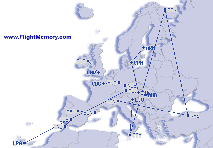 | Stysta flug: | 39 km, 0:33 h, Palm Springs (Thermal) - Palm Springs (International), 20.12.2025 |