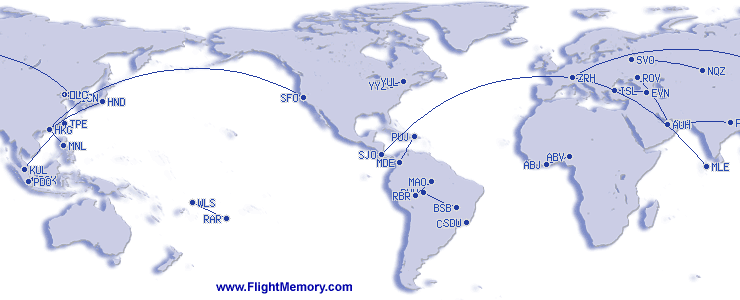 | Lengsta flug(vegalengd): | 11,140 km, 12:49 h, San Francisco (International) - Hong Kong (International), 14.04.2026 |