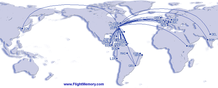 | 最大距離を持つフライト: | 12,560 km, 16:07 h, Mumbai (Bombay) (Chhatrapati Shivaji) - Newark (Liberty), 17.12.2025 |