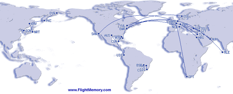 | フライトの平均距離及び時間: | 2,316 km, 3:10 h |