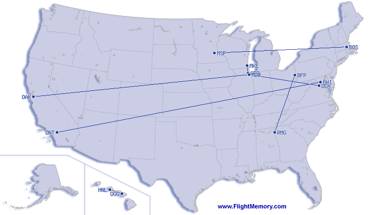 | Najkraci let: | 162 km, 0:47 h, Honolulu (Daniel K. Inouye Int.) - Kahului, 01.04.2026 |