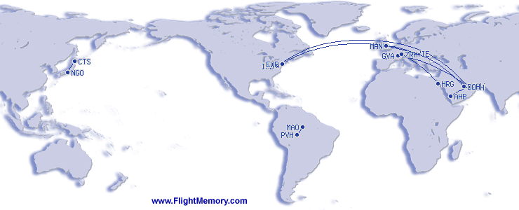 | Penerbangan Paling Lama: | 12:25 h, 11,399 km, Washington (Dulles) - Abu Dhabi (International), 22.11.2025 |