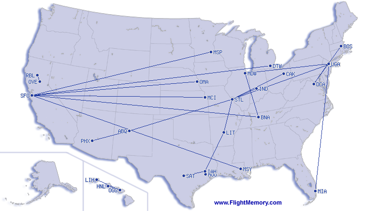 | Kortste vlucht: | 38 km, 0:33 h, Houston (George Bush Intercontinental) - Houston (William P. Hobby), 05.01.2026 |