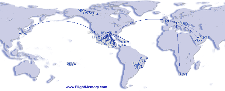 | Verste vlucht: | 10,427 km, 10:58 h, Shanghai (Pudong) - Los Angeles (International), 23.10.2025 |