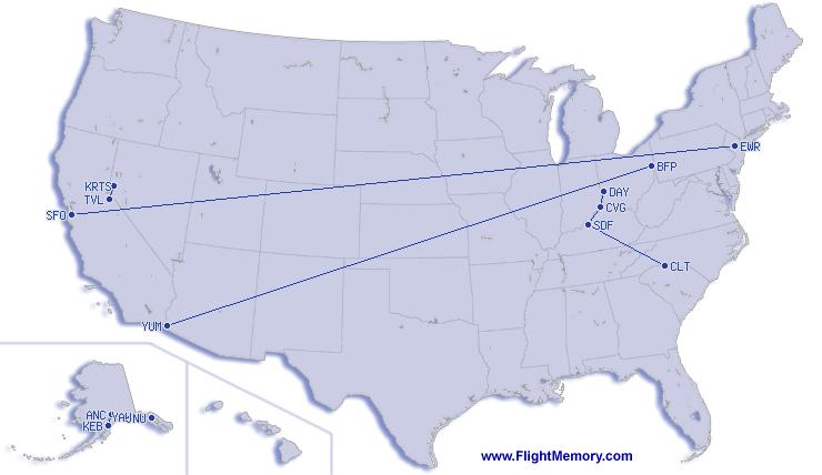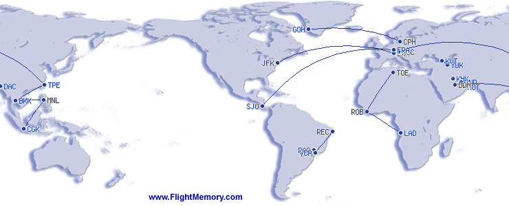 | Najduzi let (daljina): | 9,364 km, 10:54 h, San Jose (International) - Frankfurt (Rhein-Main), 19.03.2026 |