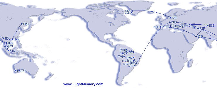 | Najduzi let (daljina): | 10,069 km, 13:00 h, Singapore (Changi) - Munich (Franz Josef Strauss), 25.03.2026 |