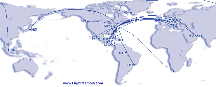 | Genomsnitts flygsträcka: | 3,619 km, 4:40 h |