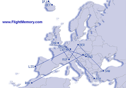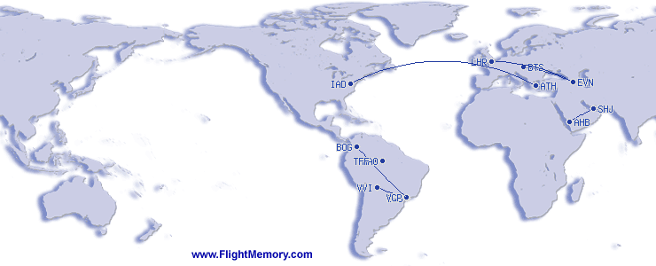 | najdaljši let (po dolžini): | 8,306 km, 11:02 h, Athen (Eleftherios Venizelos) - Washington (Dulles), 20.11.2025 |
