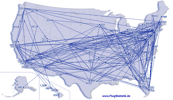 unterschiedliche Flugrouten | 1071 |