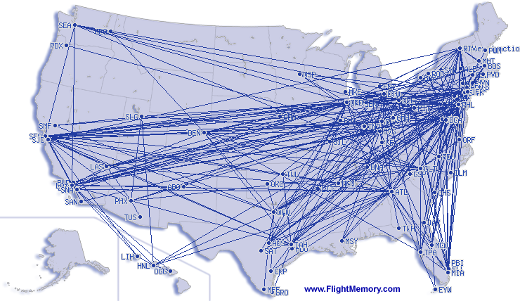 | Legrövidebb repülés: | 55 mi, 0:35 h, Philadelphia (International) - Allentown (Lehigh Valley International), 05.02.2002 |