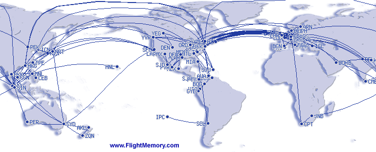 | Leghosszabb repülés (Távolságban): | 9,540 mi, 18:35 h, Newark (Liberty) - Singapore (Changi Airport), 16.07.2004 |