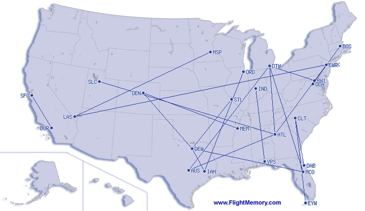 | 平均航线距离及时间: | 764 mi, 2:07 h |