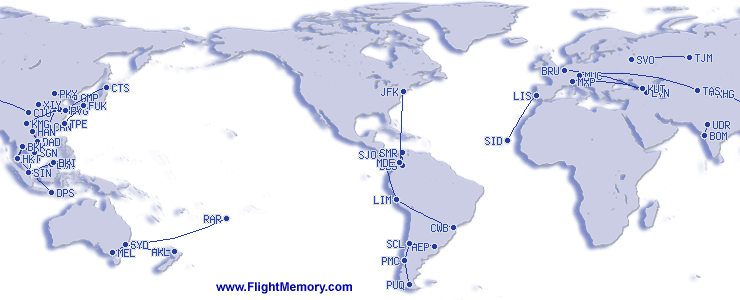 | 所搭乘过最长时间的航线: | 6:03 h, 3,099 mi, Sydney (Kingsford Smith) - Rarotonga, 04-03-2026 |