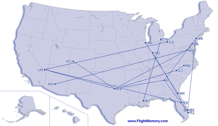 | Átlag repült távolság és idő: | 664 mi, 1:51 h |