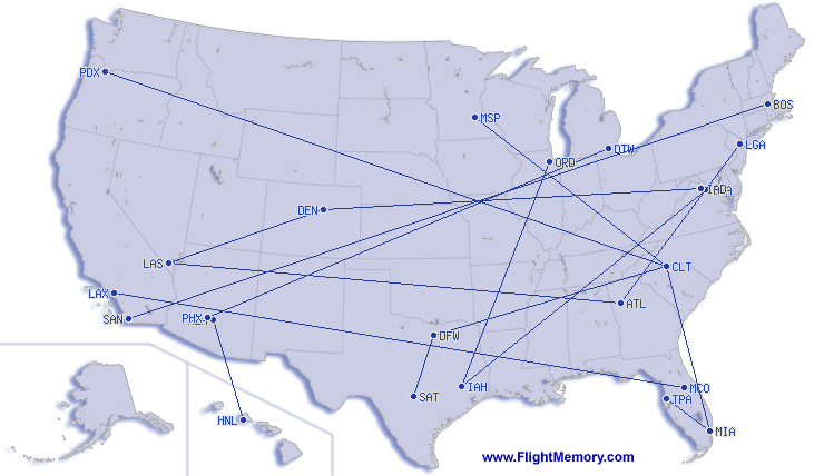 | Lengsta flug(flugtími): | 6:25 h, 2,585 mi, Boston (Logan) - San Diego (Lindbergh Field), 04-10-2026 |