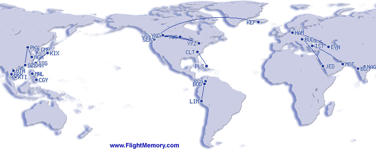 Lengsta flug(vegalengd): | 3,615 mi, 6:58 h, Reykjavik (Keflavik International) - Seattle (Seattle-Tacoma International), 10-21-2025 |