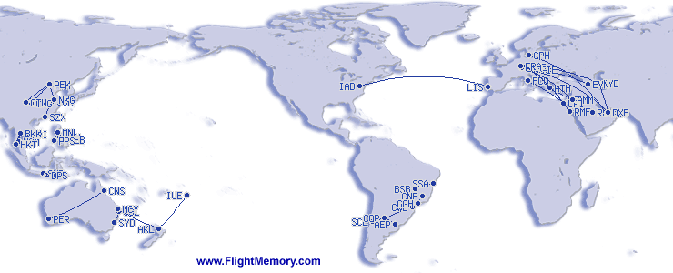 | Lengsta flug(vegalengd): | 3,587 mi, 7:05 h, Washington (Dulles) - Lisbon (Humberto Delgado), 12-11-2025 |