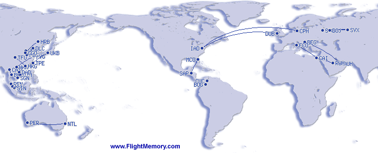 | Lengsta flug(flugtími): | 9:20 h, 4,067 mi, Copenhagen (Kastrup) - Washington (Dulles), 03-14-2026 |