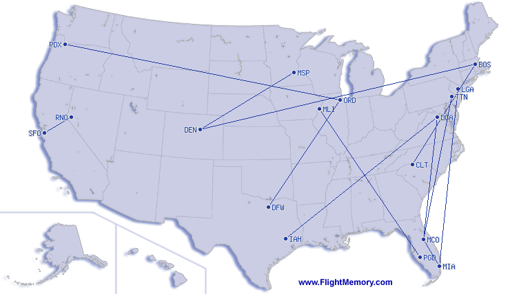 | Gjennomsnitt pr. flygning: | 667 mi, 1:56 h |