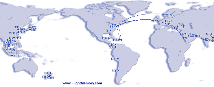 | Lengste flygning (Flytid): | 9:45 h, 4,004 mi, Milano (Malpensa) - Newark (Liberty), 12-23-2025 |