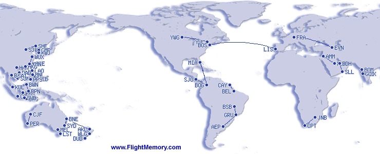 | Najduzi let (daljina): | 3,188 mi, 6:25 h, Boston (Logan) - Lisbon (Humberto Delgado), 02-20-2026 |