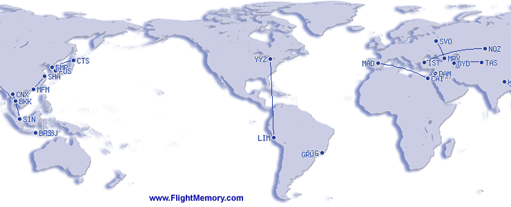 | 最長航程(距離): | 3,856 mi, 7:51 h, Lima (Internacional Jorge Chavez) - Toronto (Lester B Pearson Intl.), 04-26-2026 |