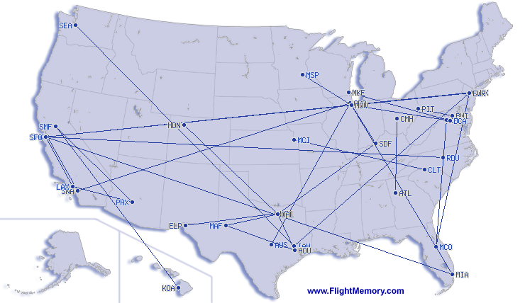 | Længste flyetid: | 6:48 h, 2,583 mi, New York (John F. Kennedy) - San Francisco (International), 03-04-2026 |