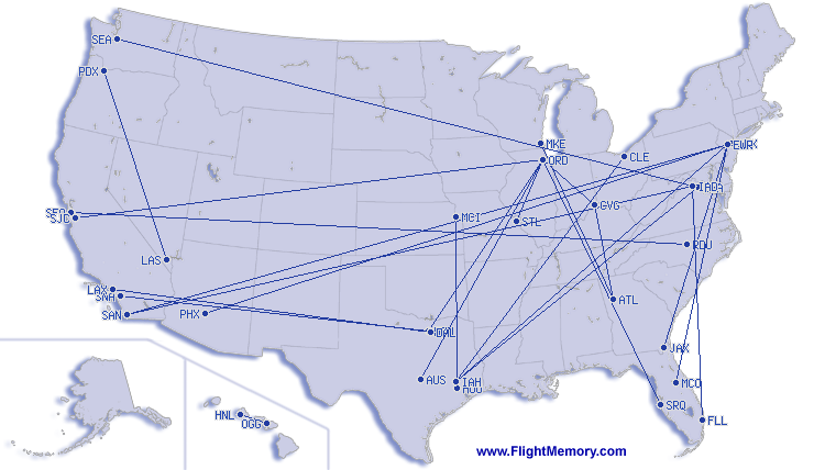 | Vol le plus long (en temps): | 6:21 h, 2,443 mi, New York (John F. Kennedy) - San Diego (Lindbergh Field), 11-04-2025 |