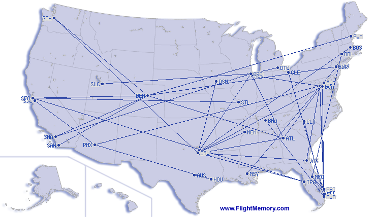 | Najkraci let: | 142 mi, 1:00 h, West Palm Beach (International) - Orlando (International), 11-17-2025 |