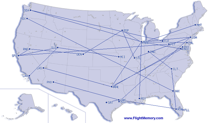 | Langste vlucht: | 5:13 h, 2,018 mi, Cleveland (Hopkins International) - Seattle (Seattle-Tacoma International), 03-25-2026 |