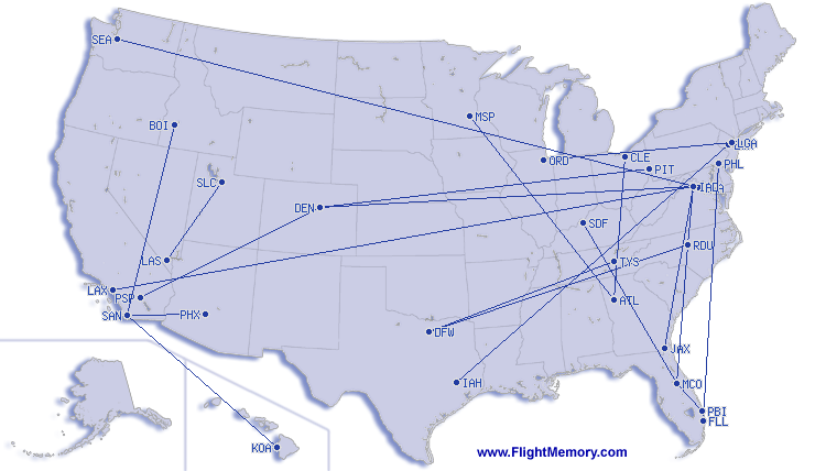 | Gjennomsnitt pr. flygning: | 862 mi, 2:20 h |