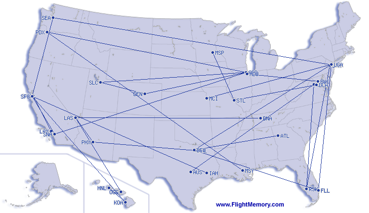 | Najkrótszy lot: | 164 mi, 1:00 h, Kona (Ellison Onizuka Kona Int.) - Honolulu (Daniel K. Inouye Int.), 03-02-2026 |