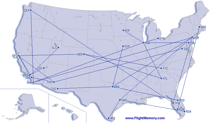 | Najduzi let (trajanje-vremenski): | 6:32 h, 2,536 mi, Montreal (Pierre Elliott Trudeau/Dorval) - San Francisco (International), 11-17-2025 |