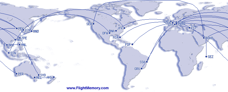 | Pisin lento (välimatka): | 7,406 mi, 14:45 h, Doha (Hamad International) - Seattle (Seattle-Tacoma International), 12-07-2025 |