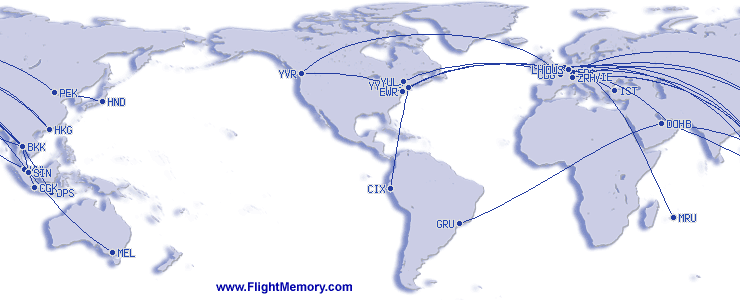 | Najduzi let (daljina): | 7,377 mi, 13:30 h, São Paulo (Guarulhos) - Doha (Hamad International), 12-01-2025 |